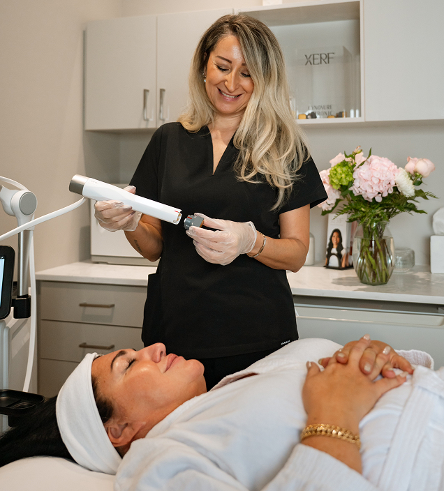XERF delivers controlled energy deep into the skin to activate the body’s natural regenerative response. By targeting the deeper dermal layers, it encourages collagen remodeling and cellular turnover — improving skin quality from the inside out, not just at the surface. The result is skin that looks firmer, clearer, and more refined, with progressive improvement following treatment.